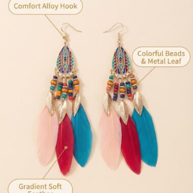 Color: Multi colored feathers (pink/red/blue)+colorful beads